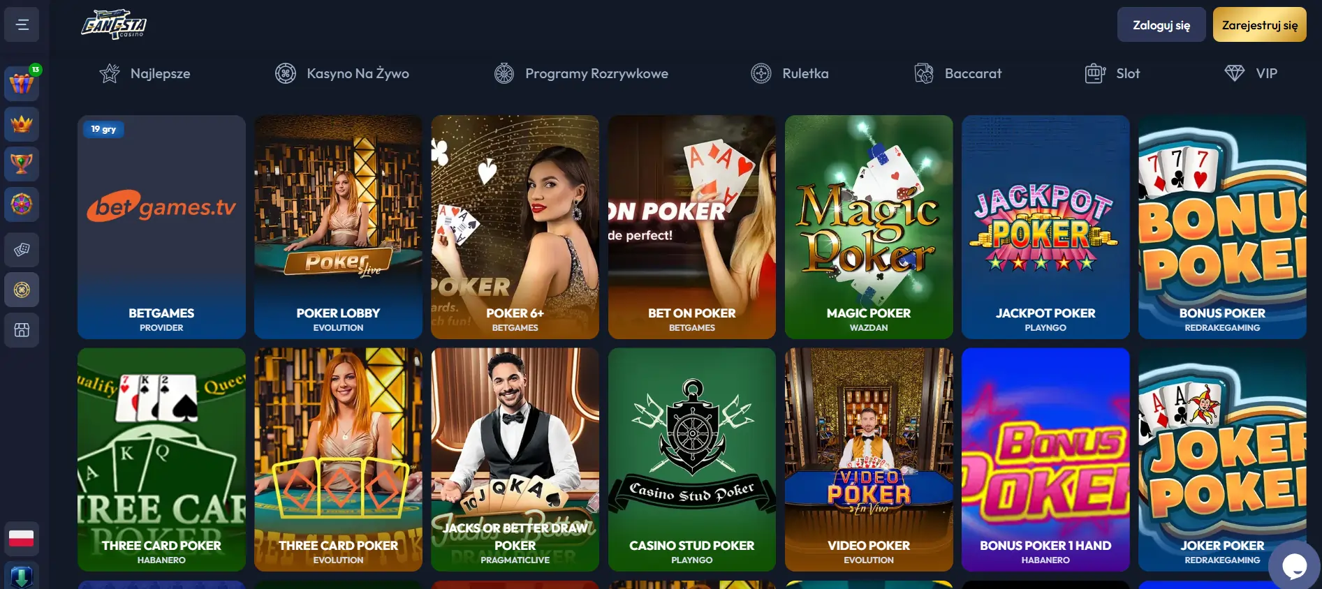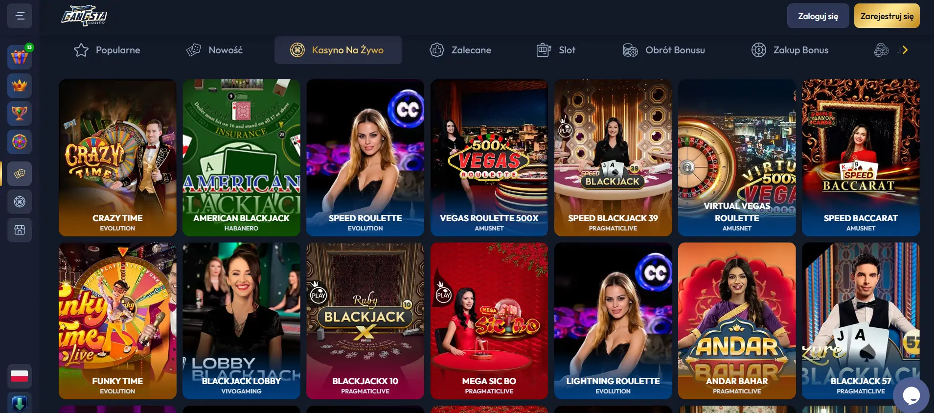 Gry z krupierami na żywo w Gangsta Casino wyróżniają się prostotą i płynnością. Zasady są jasne, rundy szybkie, a prowadzący dbają o komfort i dynamikę rozgrywki.