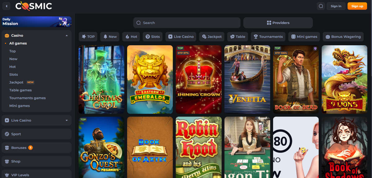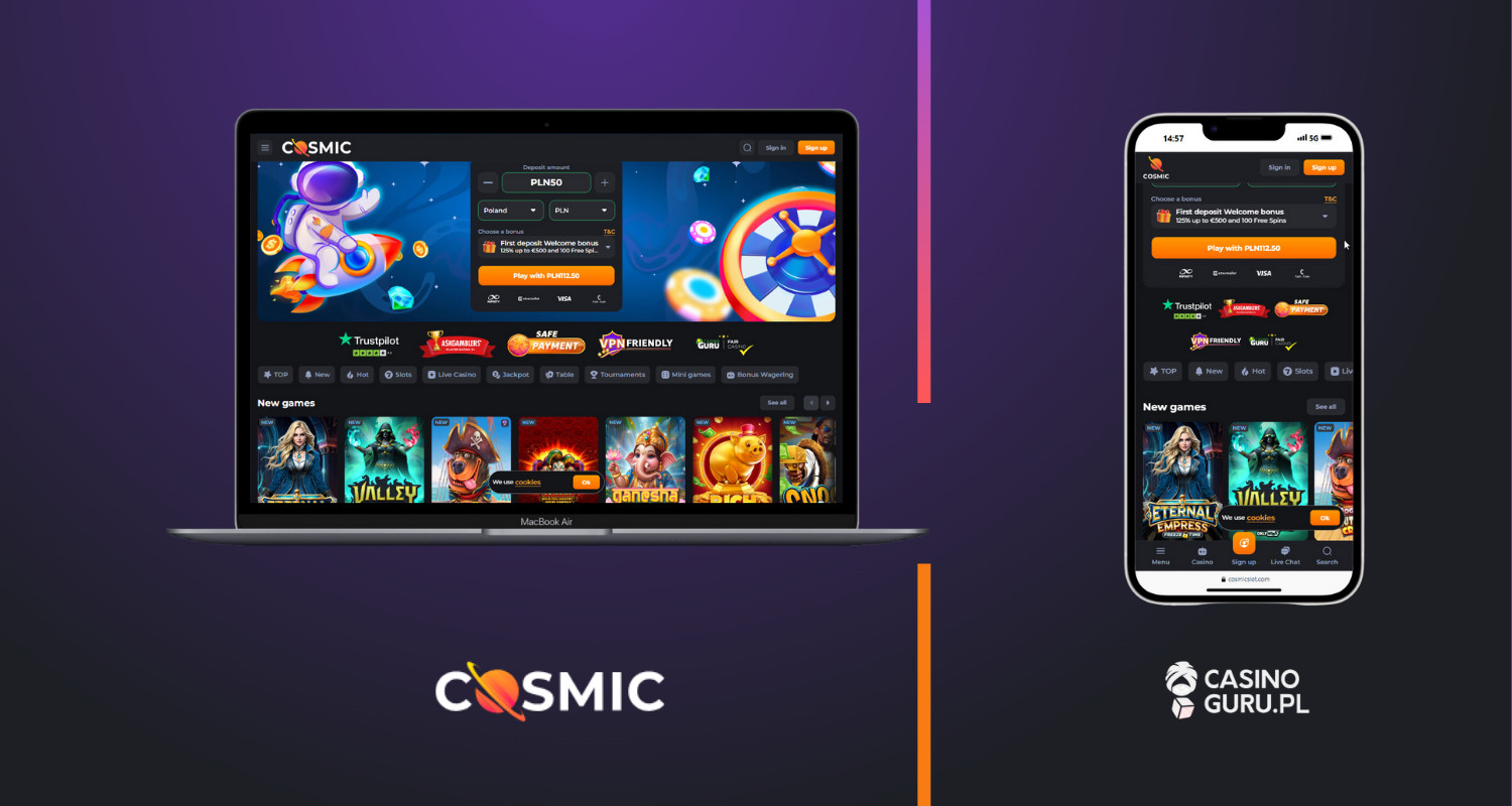 Pokaż więcej 👀CosmicSlot – to kasyno online założone w 2020 roku, oferujące wyjątkową jakość i wygodne metody płatności dla Polaków. Więcej wysokiej jakości kasyn można znaleźć w artykule TOP Kasyna online 2025.