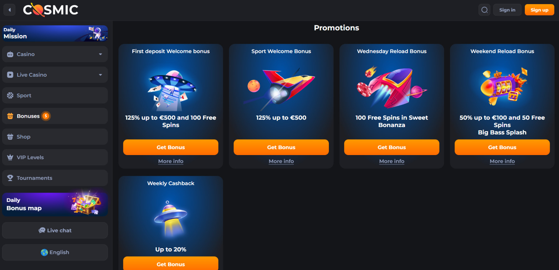Jak już wspomnieliśmy, CosmicSlot ma również oferty dla obecnych graczy: