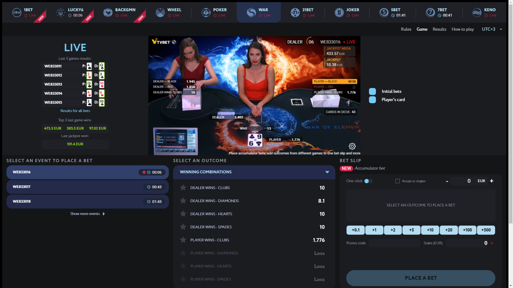Jeśli zdecydujesz się grać w litewskich kasynach, po prostu wybierz sekcję betgames.tv, a będziesz mógł tam znaleźć grę War.