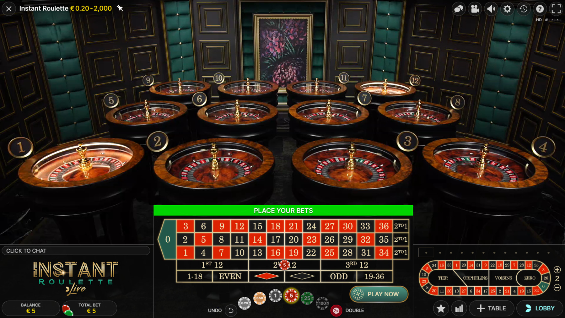 W Instant Roulette nigdy nie zostaniesz przyciśnięty przez licznik czasu, co pozwoli ci na obstawianie zakładów bez stresu.