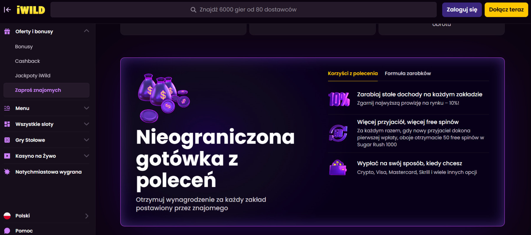 To oznacza, że Twoje zaangażowanie może przynieść jeszcze większe zyski — dzięki czemu program poleceń staje się jednym z najbardziej opłacalnych elementów iWild Casino.