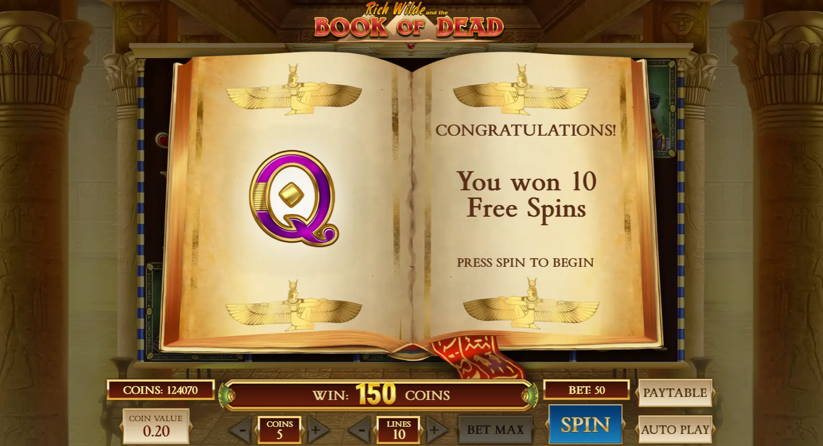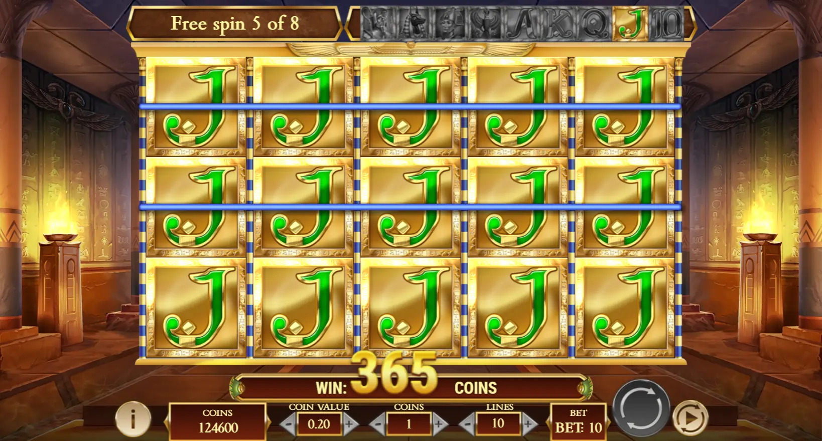Gra ma 5 bębnów, 10 linii wygrywających i specjalną funkcję – rozszerzające się symbole w darmowych spinach. Trzy symbole księgi uruchamiają 10 darmowych obrotów, a losowy symbol staje się specjalny i może wypełnić cały bęben.