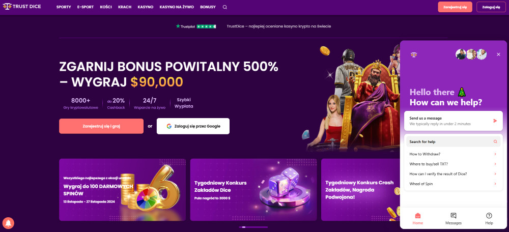 Jeśli masz jakiekolwiek problemy lub pytania, obsługa klienta TrustDice z przyjemnością Ci pomoże.