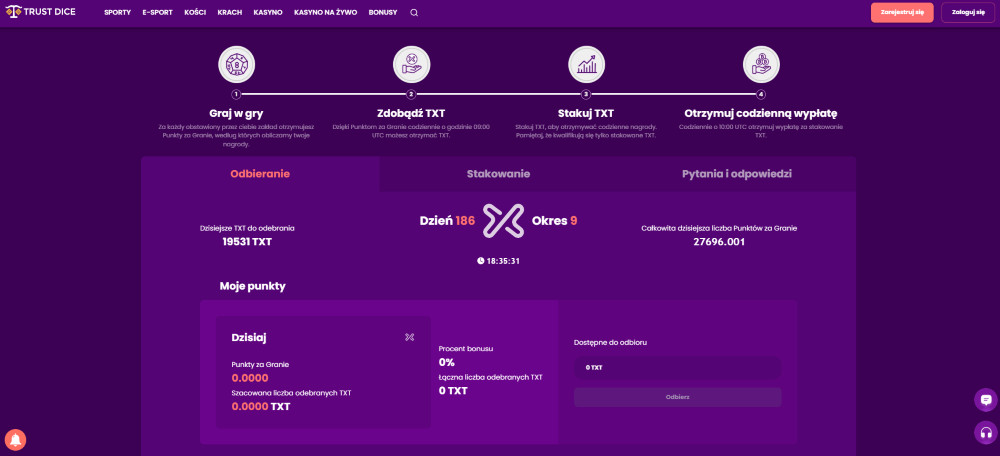 Kopanie TXT i codzienne dywidendy działają w podobny sposób. Możesz przeczytać więcej na ten temat w naszej recenzji TrustDice w sekcji poświęconej TXT.