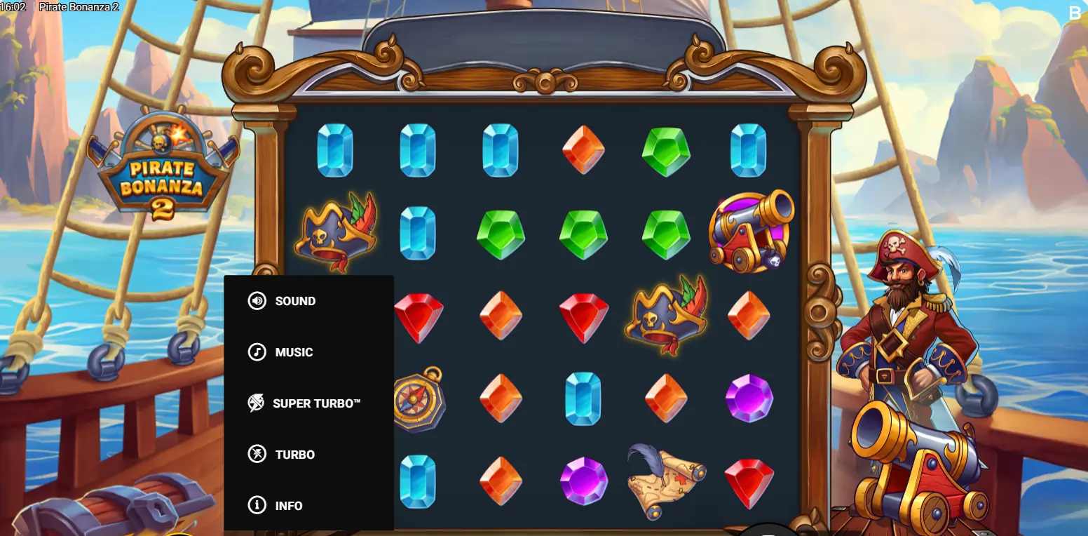 Motyw slotu Pirate Bonanza 2 trzyma się klasycznych pirackich przygód. Zobaczysz drewniane pokłady, pirackie statki, mapy skarbów i kule armatnie jako tło dla swoich spinów. Symbole to klejnoty, bomby i przedmioty związane z piratami, wszystko stworzone z jasnym, kolorowym wykończeniem. Animacje zasługują na pochwałę za swoją płynność – grupy symboli wybuchają efektami, a mnożniki lądują z wielkim impaktem.