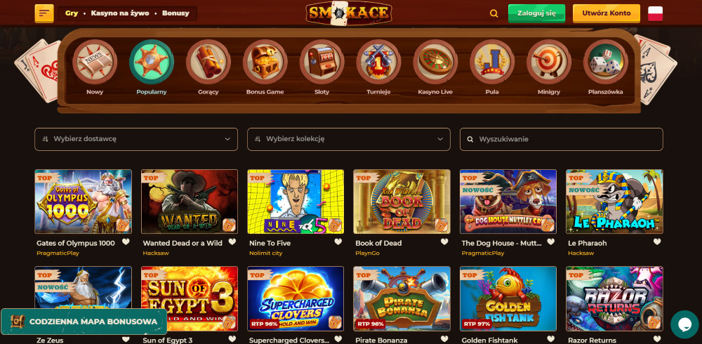 To kasyno oferuje tysiące najnowszych i najpopularniejszych gier. Bardzo cieszy fakt, że SmokAce jest w stanie zaoferować automaty od najlepszych dostawców, takich jak Hacksaw, NoLimit, Push Gaming, Pragmatic Play itp. Można je łatwo znaleźć i posortować za pomocą przydatnych filtrów na stronie.