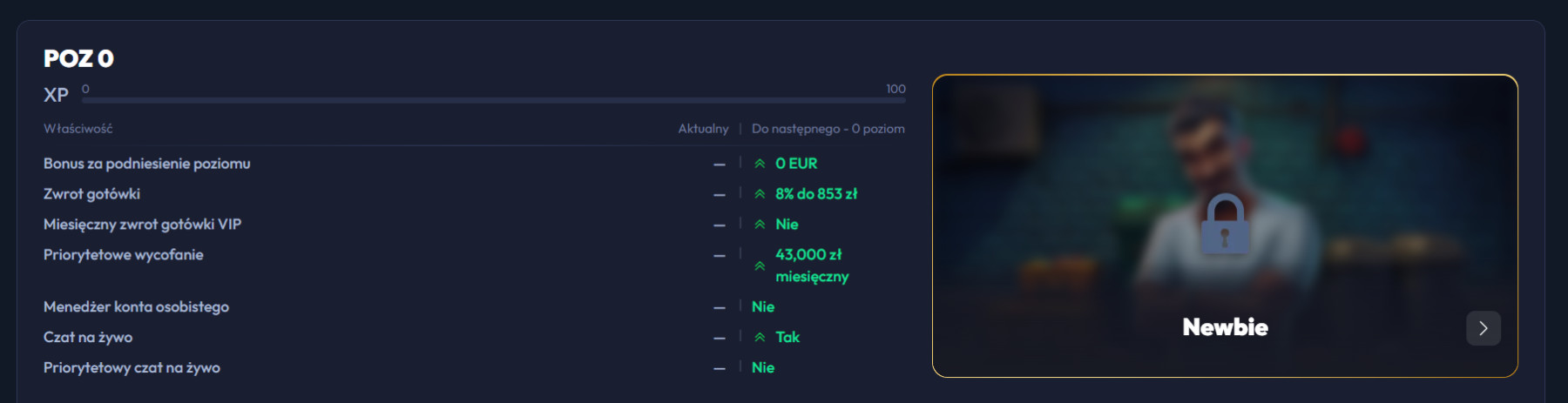 Każdy nowy poziom to jeszcze lepsze nagrody – od wyższych stawek cashbacku, przez osobistego menedżera konta, aż po szybsze wypłaty.